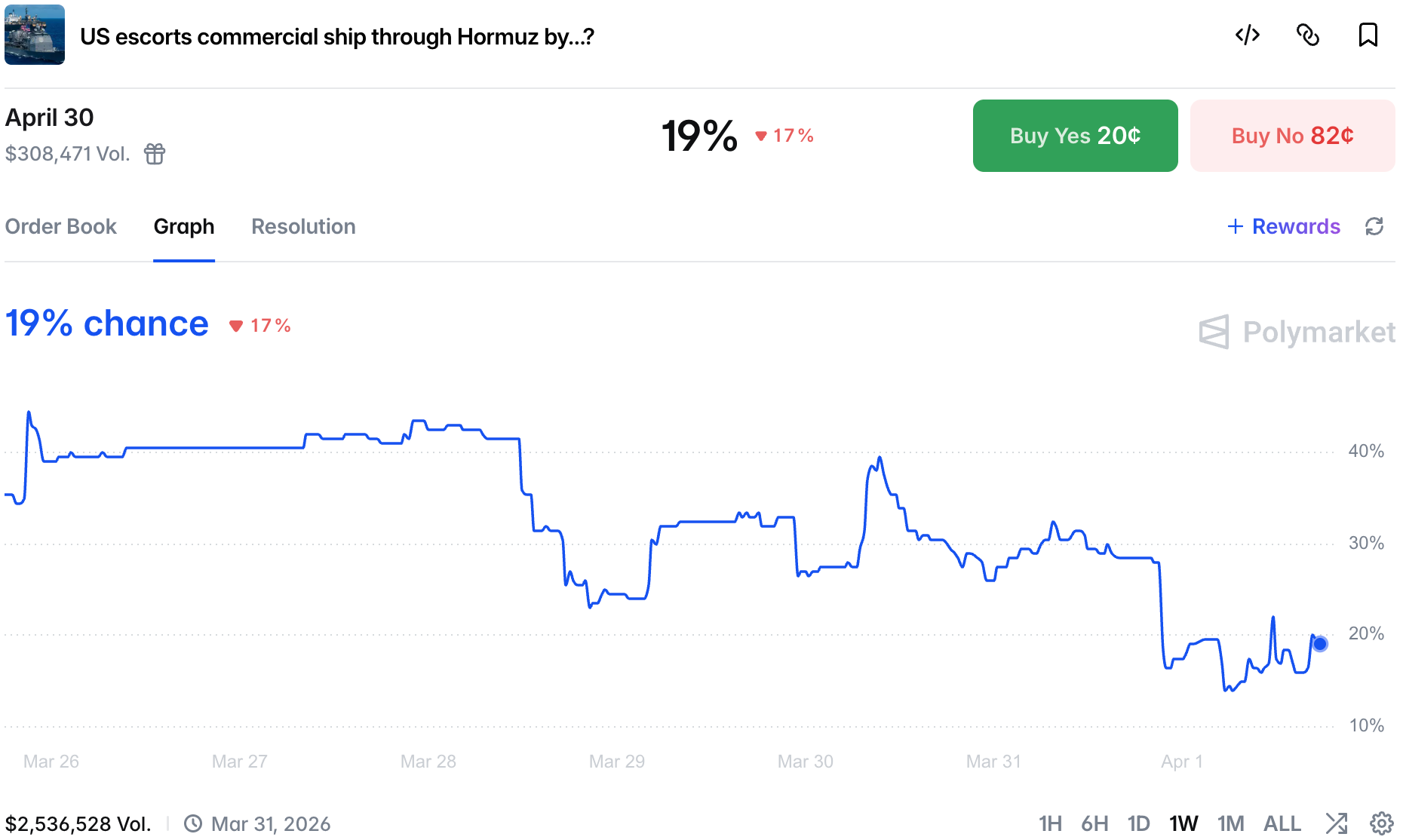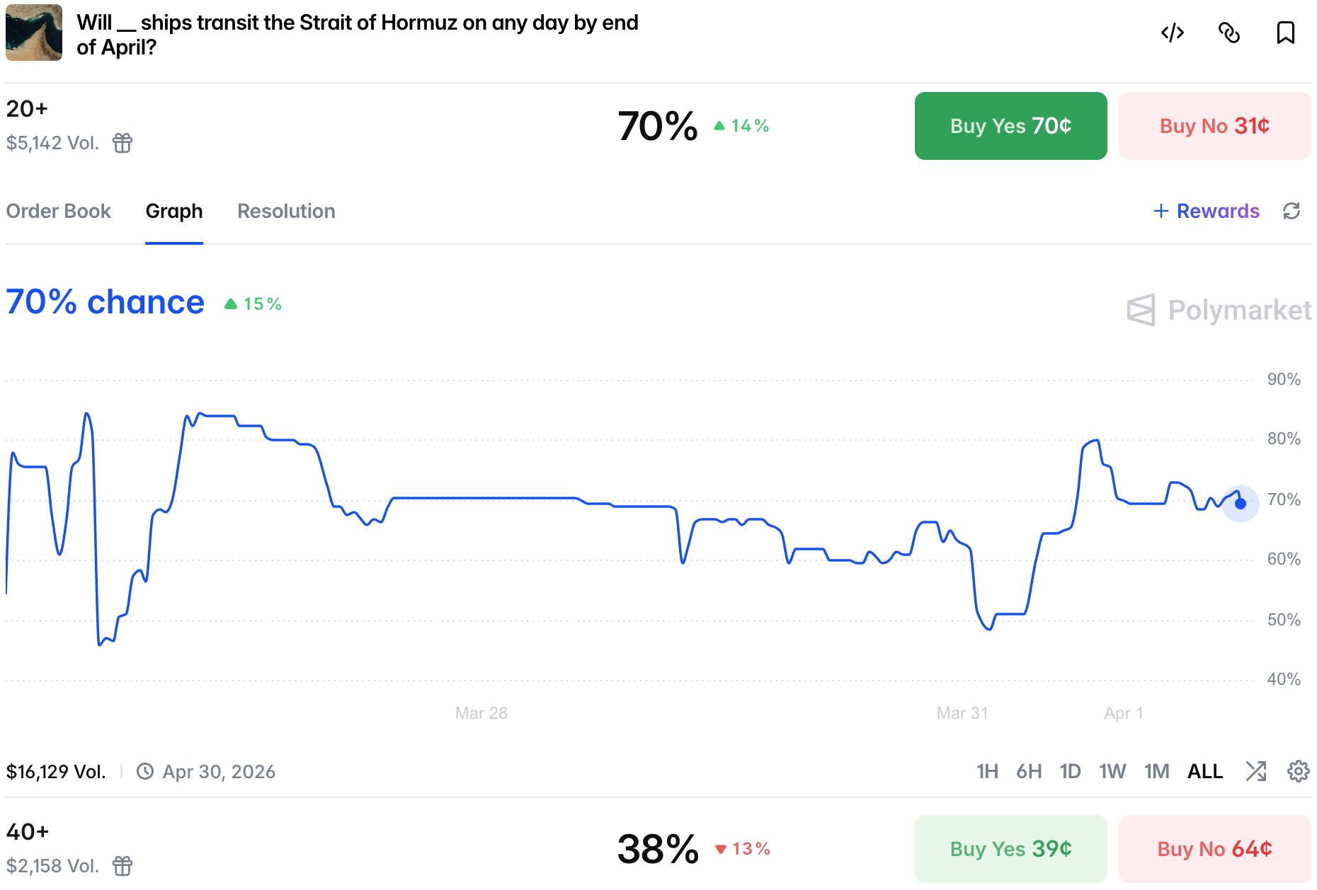 The Strait of Hormuz remains effectively closed, but traders are still bullish we will see 20+ ships passing it in a single day by the end of the month.