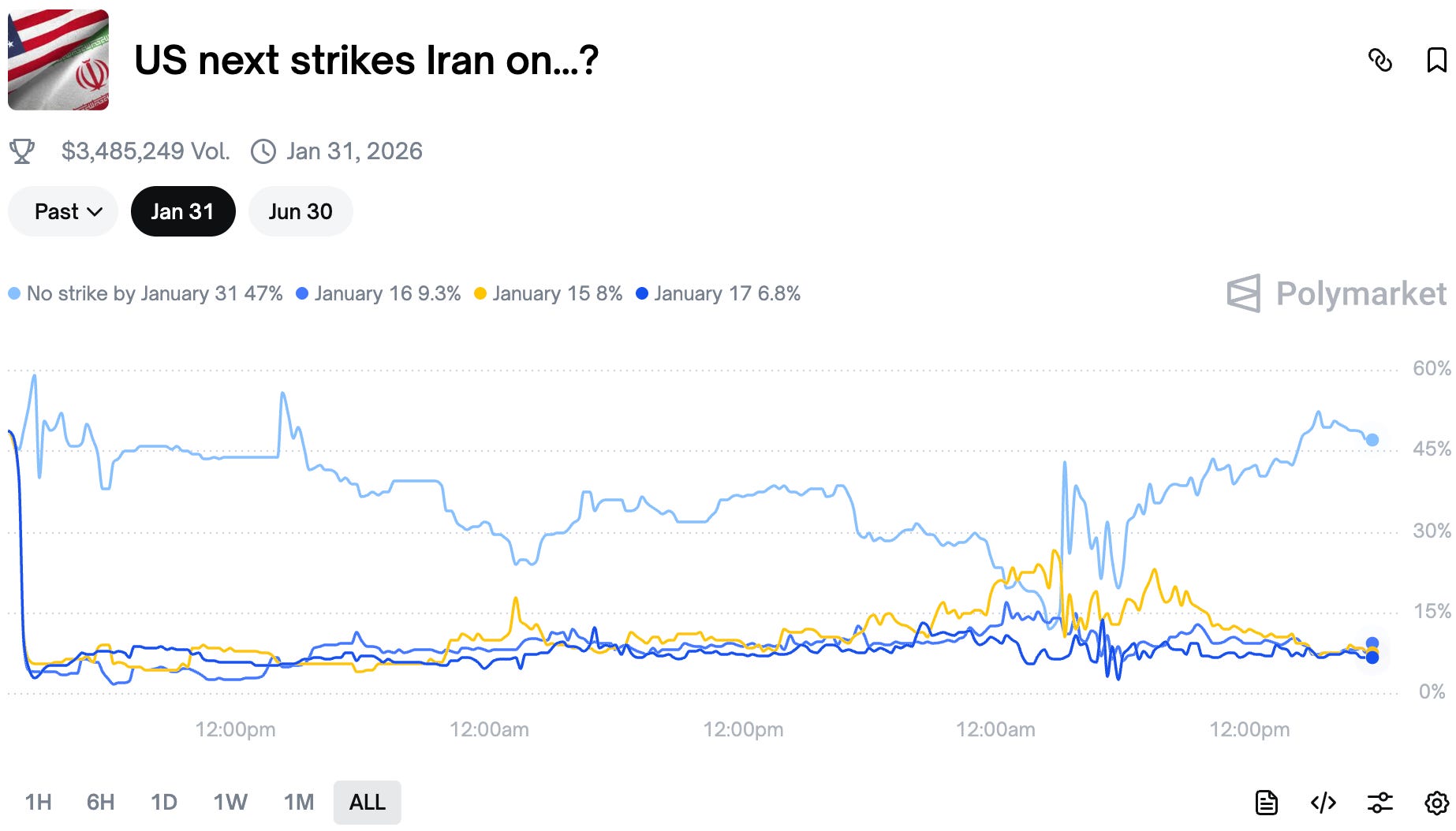 After an extremely bullish streak, traders are increasingly convinced there will be no US strikes on Iran by the end of the month.