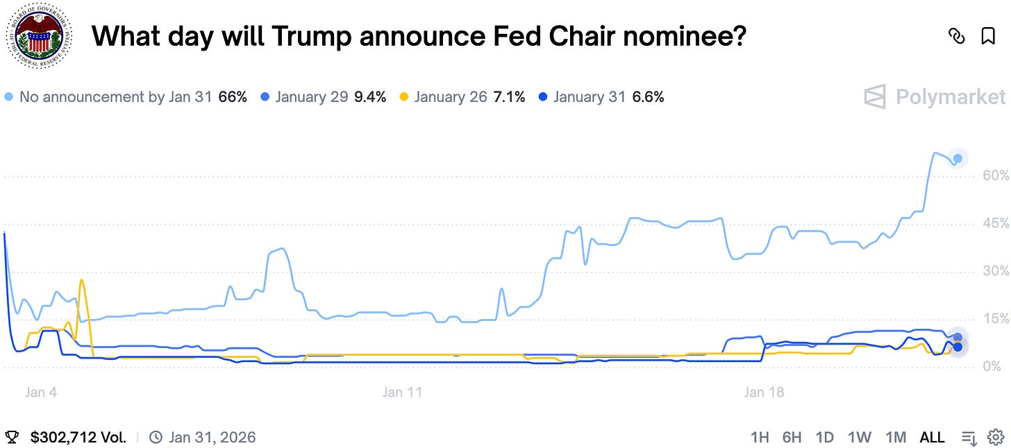 Amid all the chaos, traders see little reason Trump should focus now on the Fed chair nomination, giving only 34% chance Trump will announce his nominee by the end of the month.