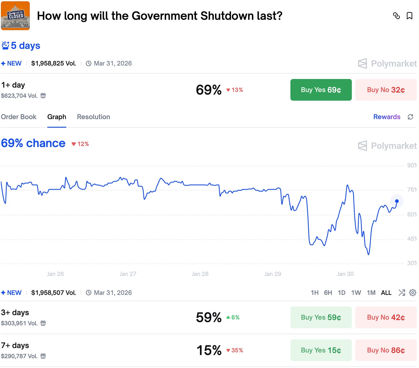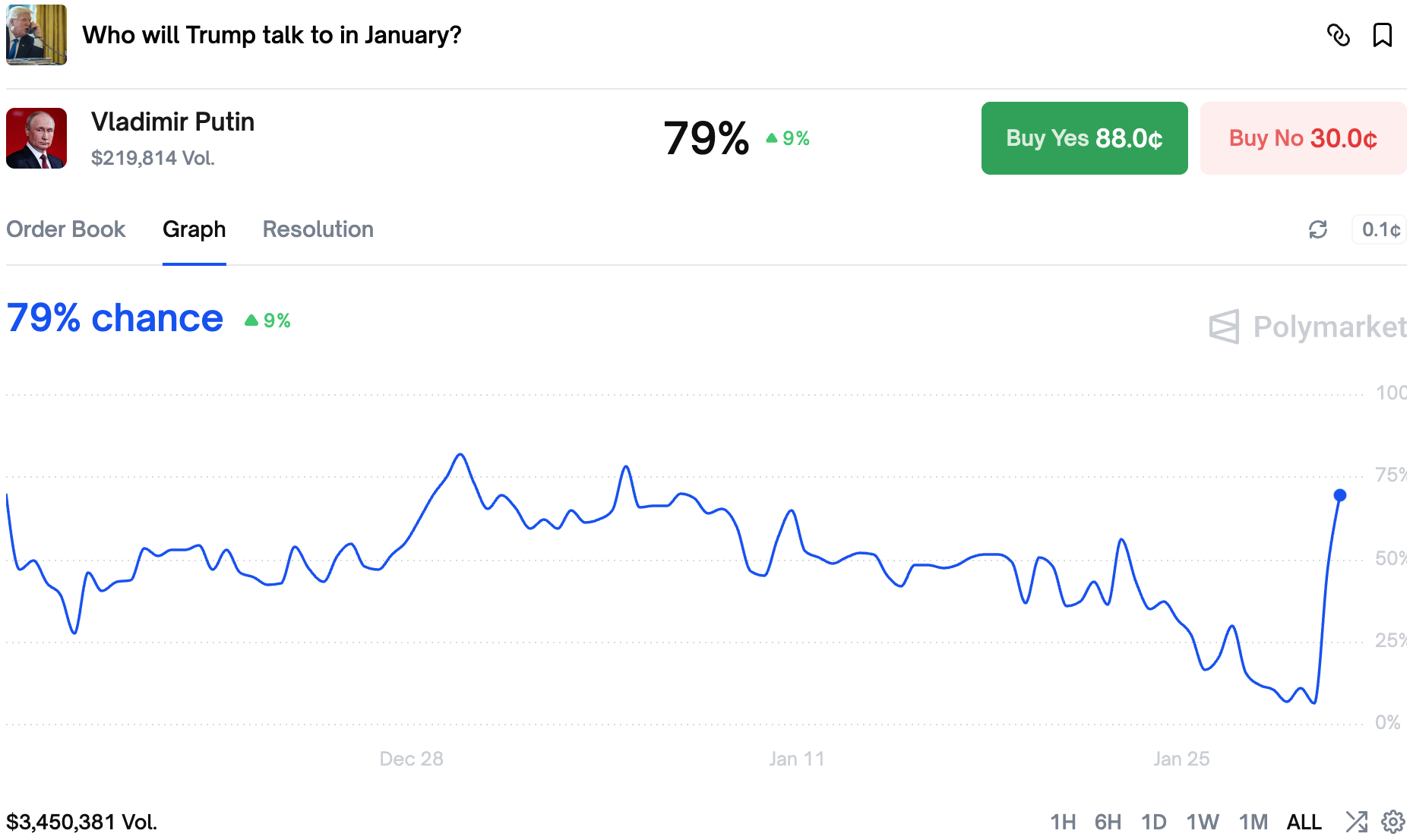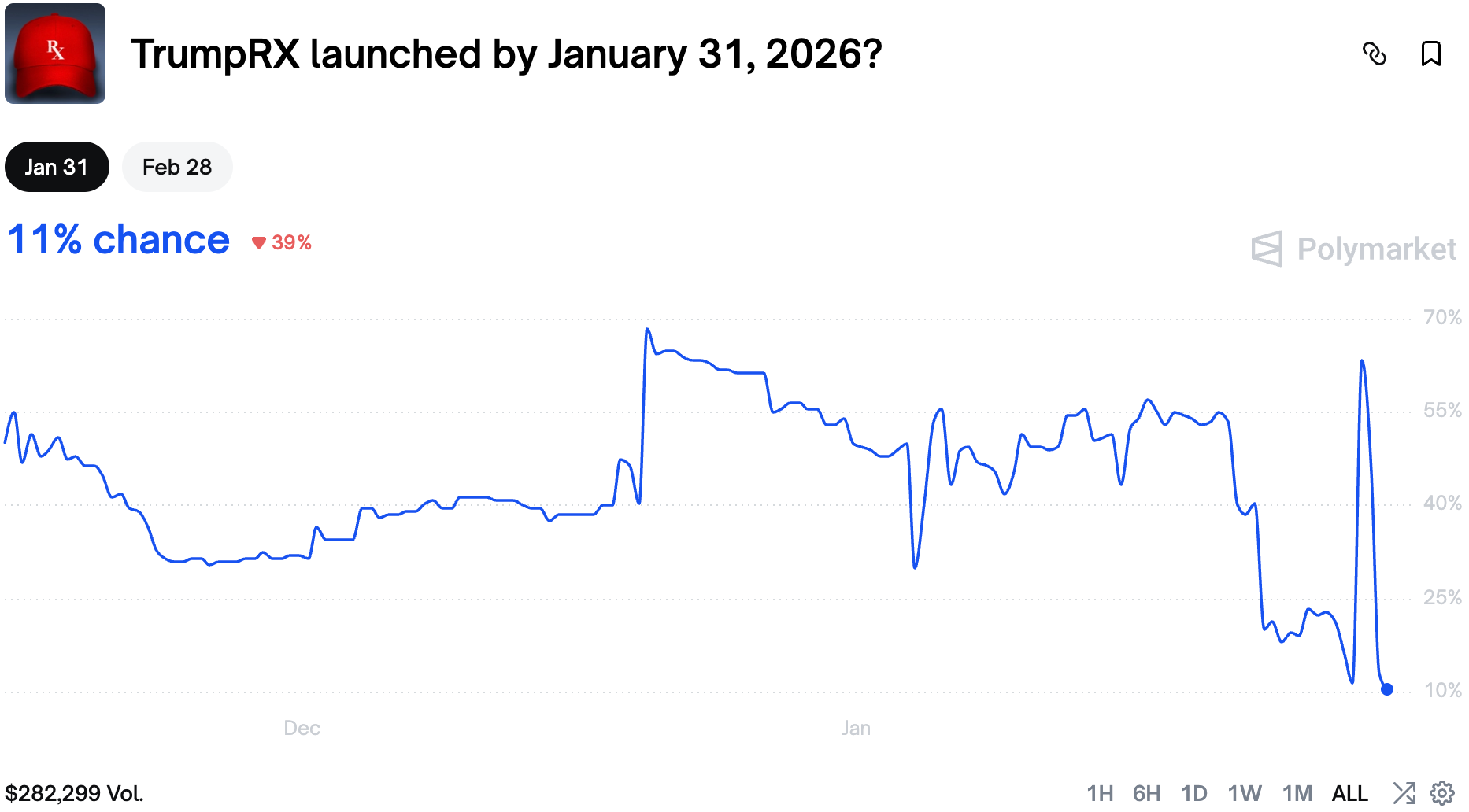 The market on the webpage going live this month pumped from 11% to almost 70% chance on the mystery Oval Office announcement yesterday. However it turned out Trump focused on other things and then ended the whole thing abruptly.