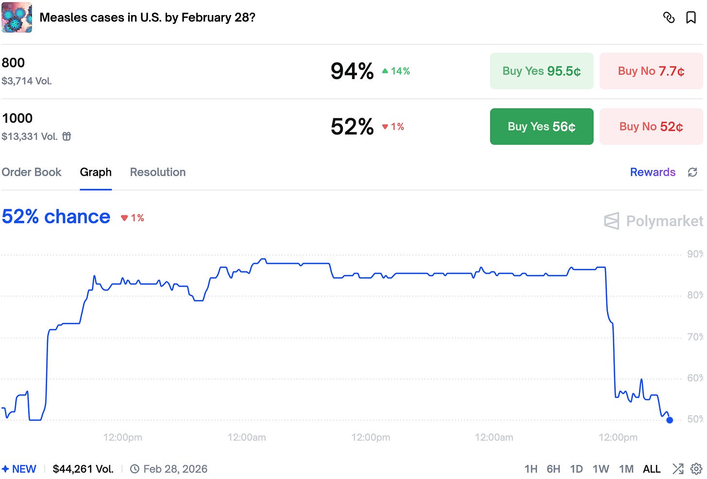 Polymarket now expects just under 1,000 measles cases in February.