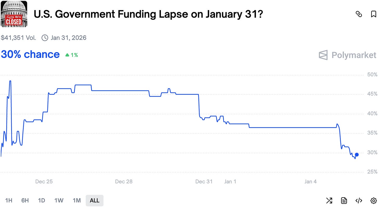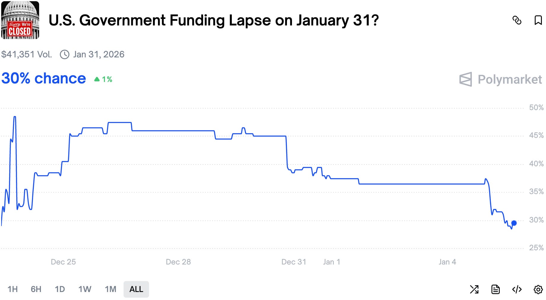 The record shutdown from last year was ended by a continuing resolution till the January 30th - if the Congress fails to agree on another continuing resolution or a proper budget bill, we can see another partial shutdown by the end of the month.