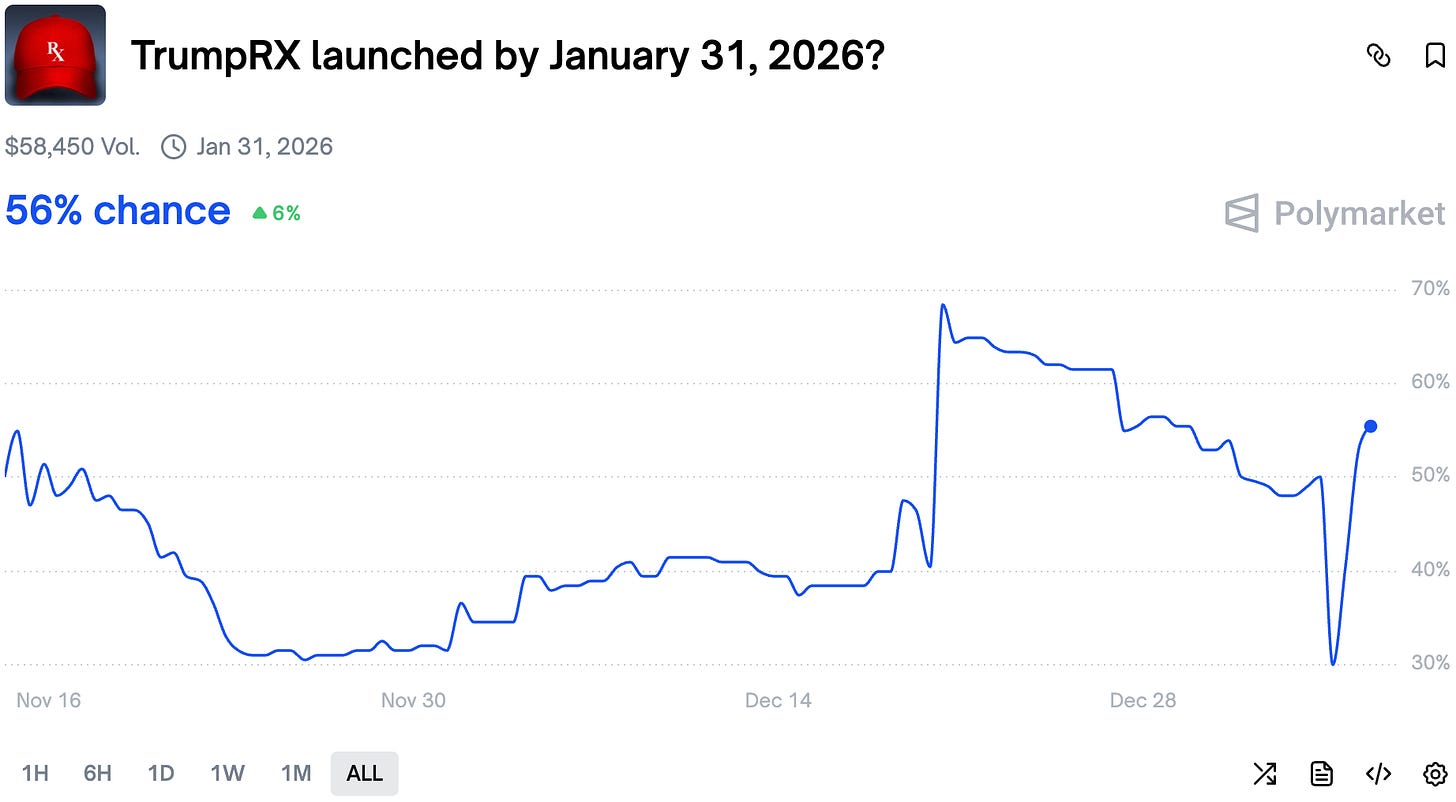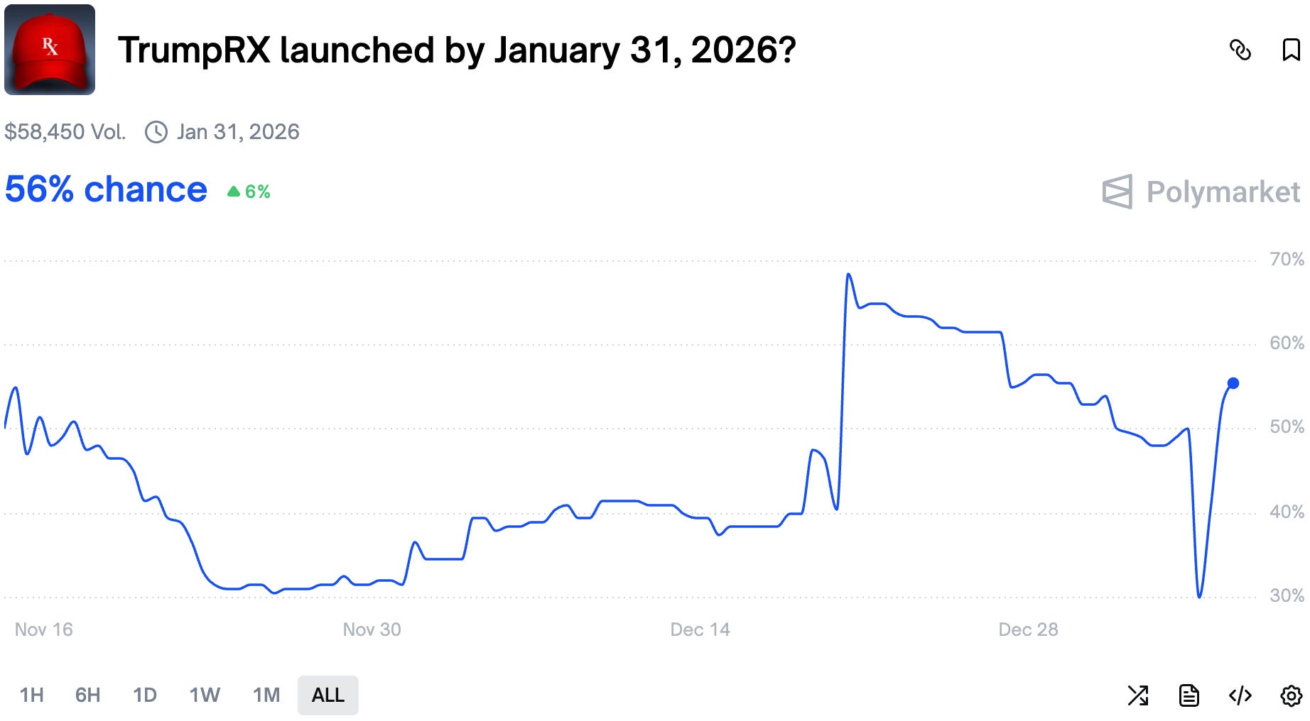 After a brief slump in odds, traders once more see strong chances Trump will launch his pharmacy project this month.