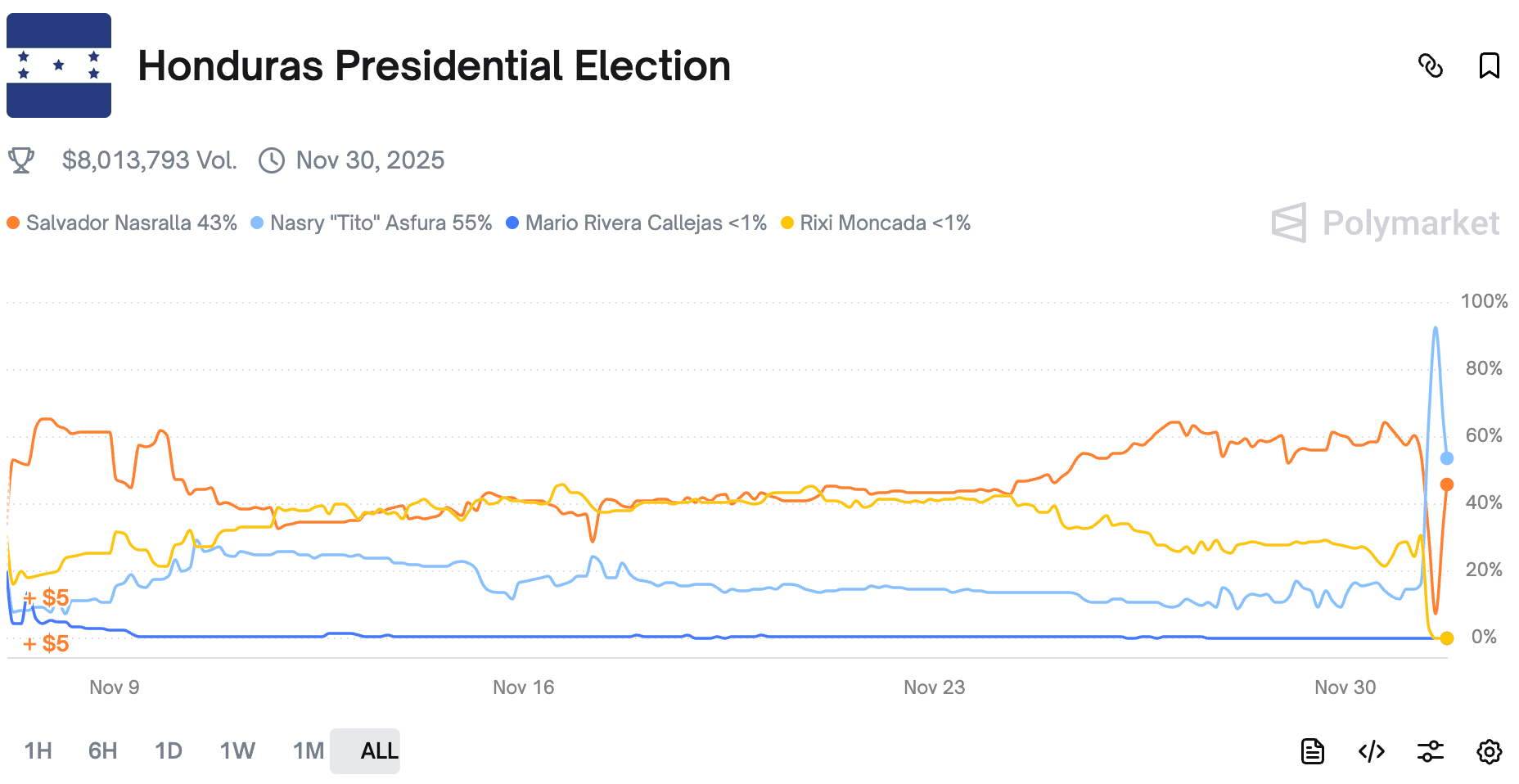 But still there were worthy market moves, from the Fed chair nomination, through Ukraine and Honduras elections, to prediction markets regulation and Polymarket US launch.