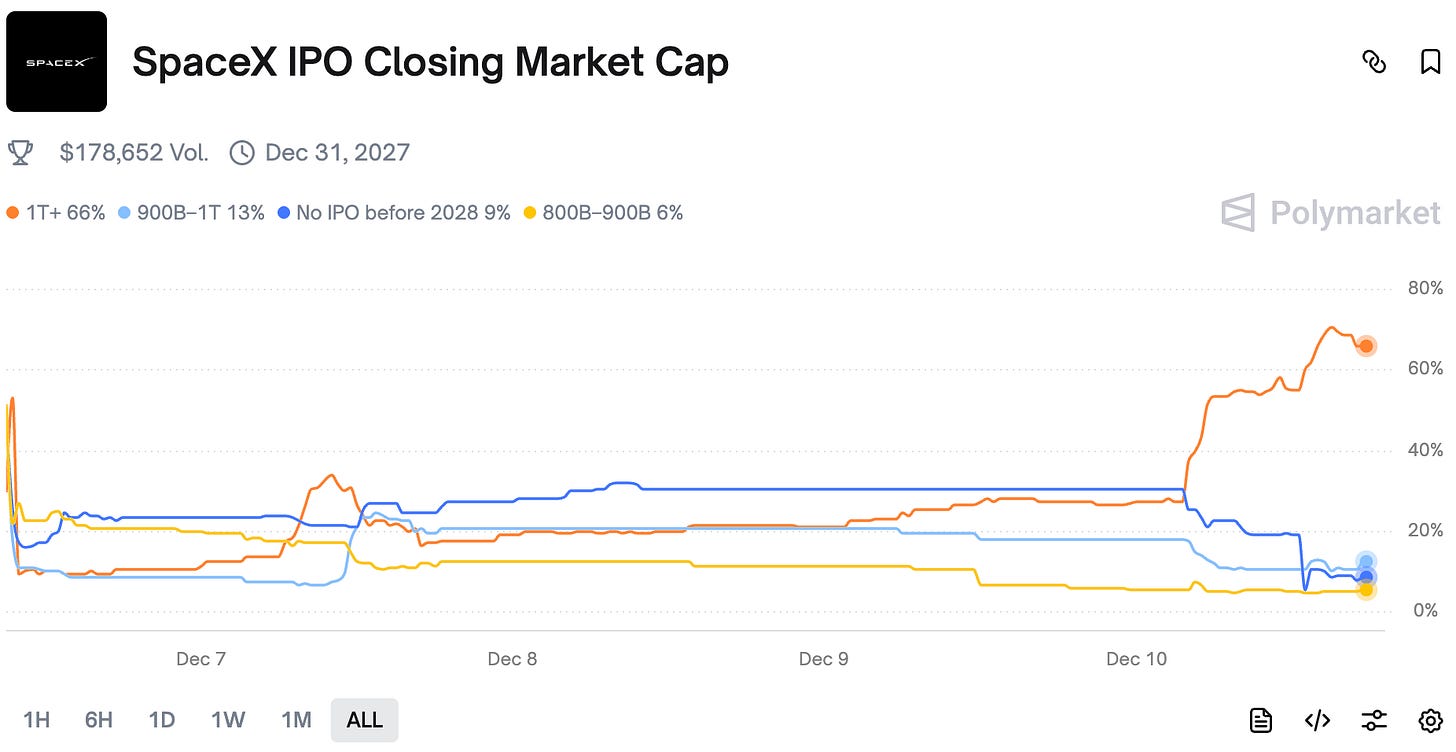 SpaceX post-IPO valuation market of over $1 trillion market soared on new rumors.