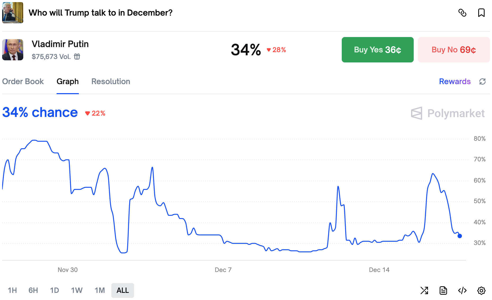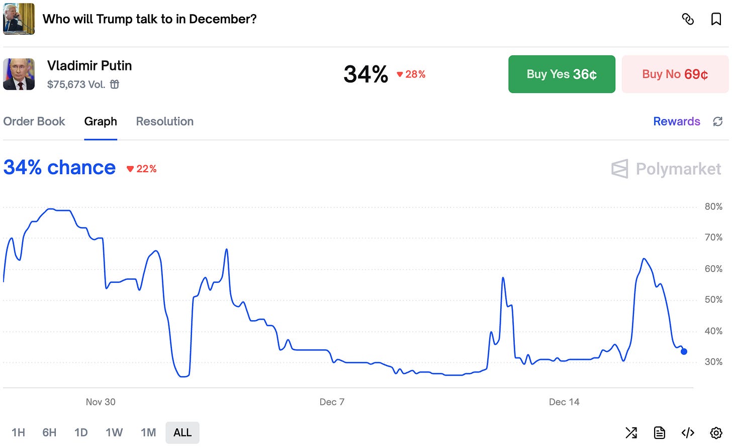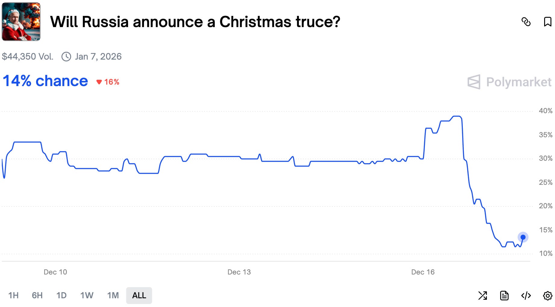 Along with dropping odds on a conversation between Trump and Putin, chances of even a unilateral Christmas truce dropped sharply.