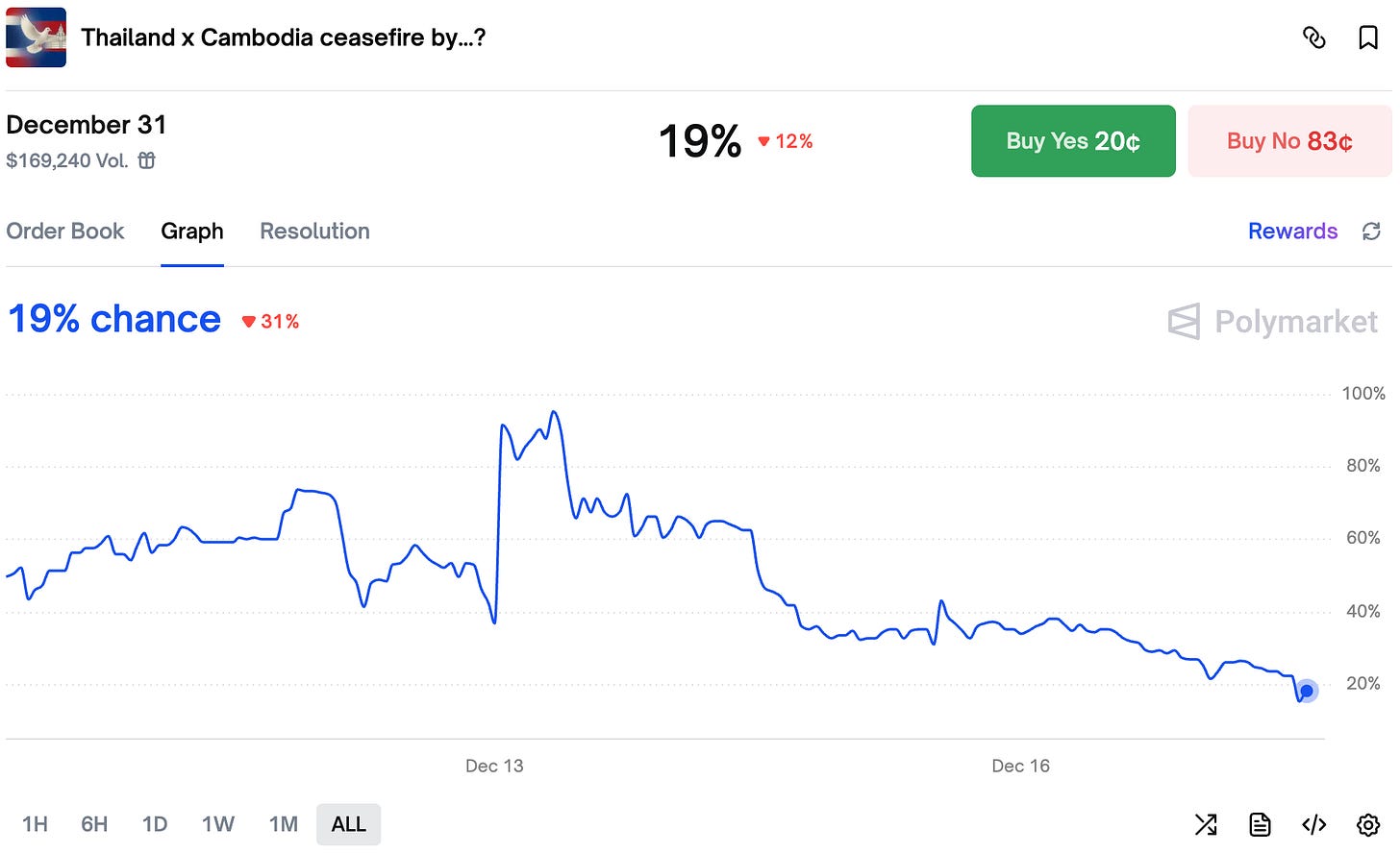 Good morning! As we approach the end of the year, we take a look at two wars - Ukraine x Russia and Thailand x Cambodia - both of which see decreasing chances of ending.