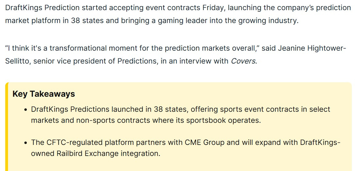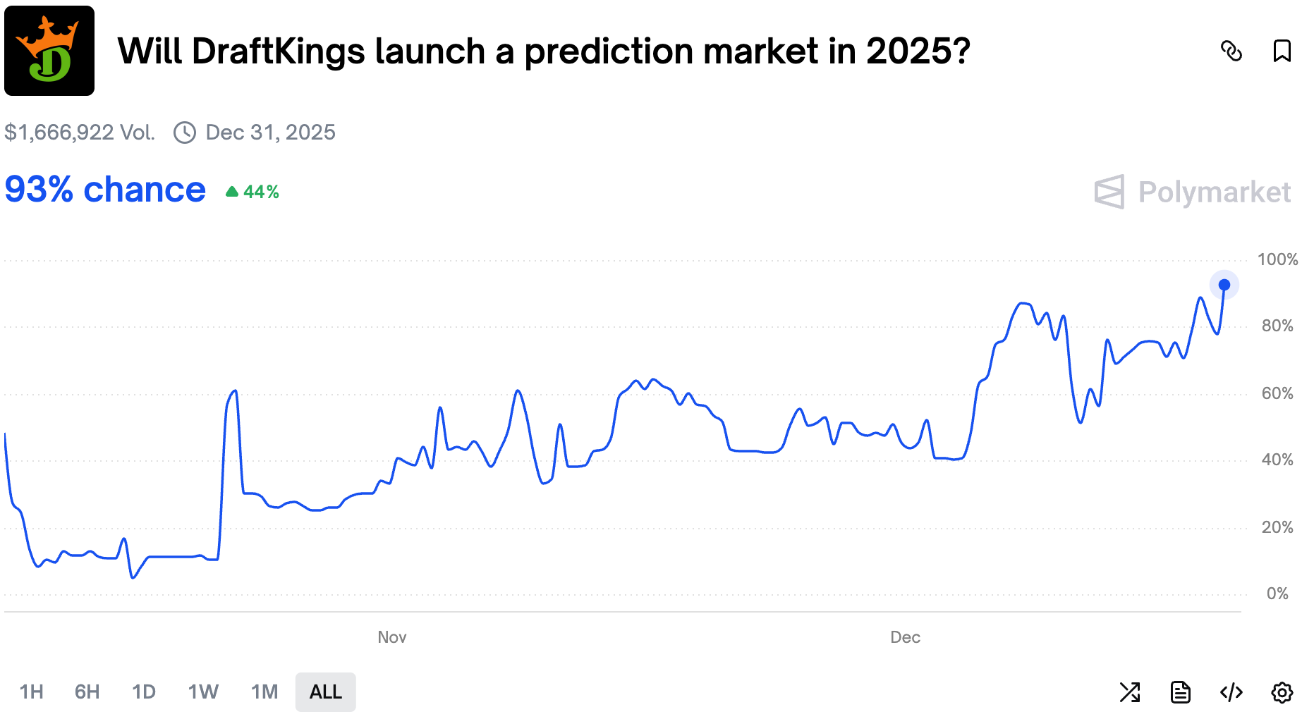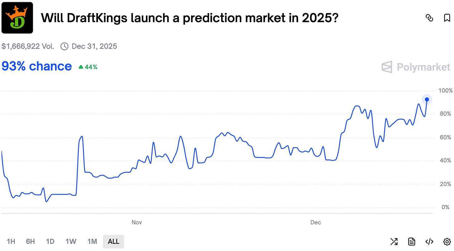 Traders are bonding this market after a story broke out about DraftKings launching a prediction market platform in 38 states. The news has been scrapped from the internet, but traders remain optimistic that we will see it once again before the end of the year. It certainly looks ready to launch, considering such a note was sent to news outlets.