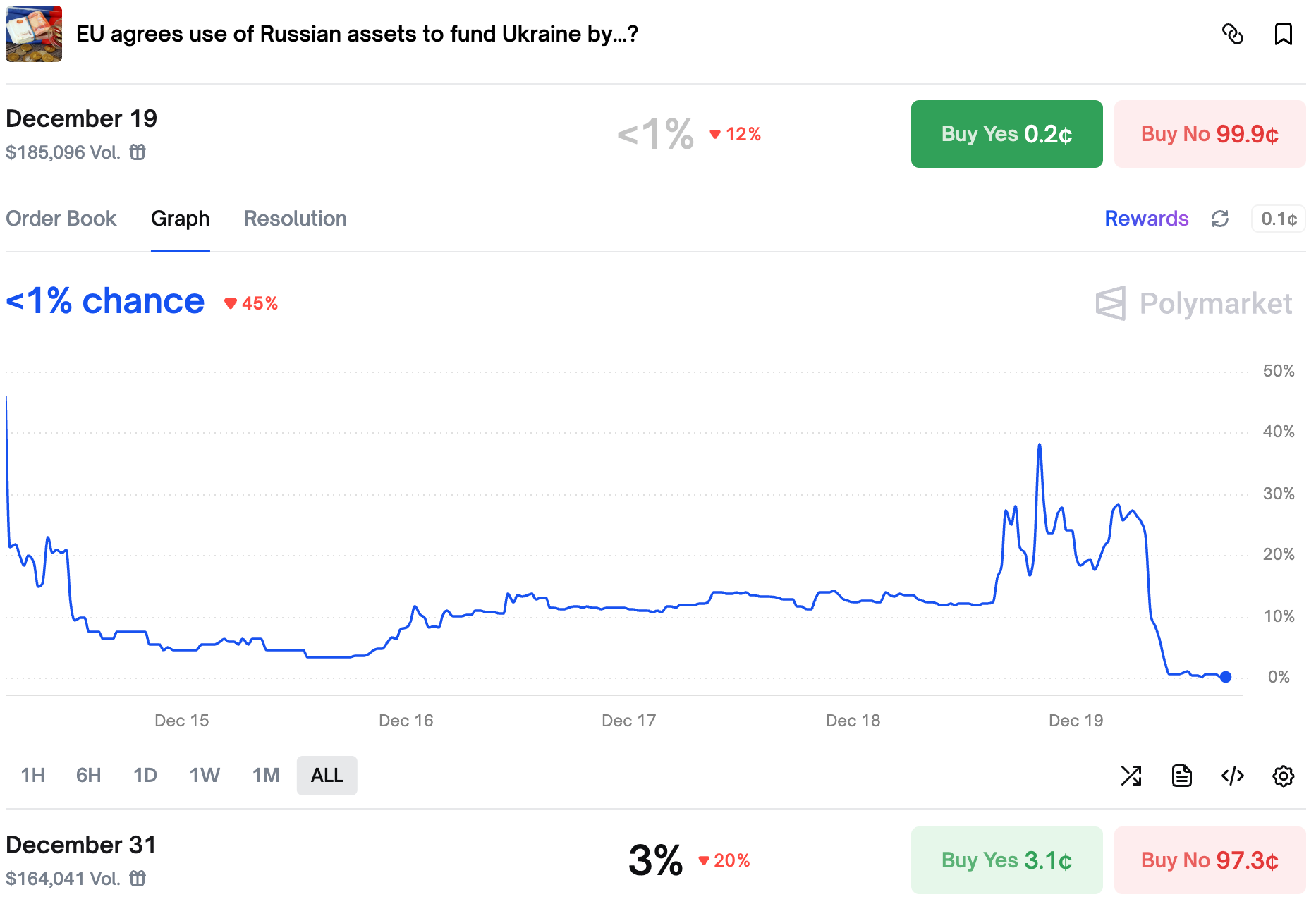 Traders were right to be skeptical - Europe couldn't reach an agreement to use the frozen Russian assets and deferred the plan, mandating the Commission to continue working on it. In the meantime, they will loan Ukraine $90 billion, backed by EU budget.