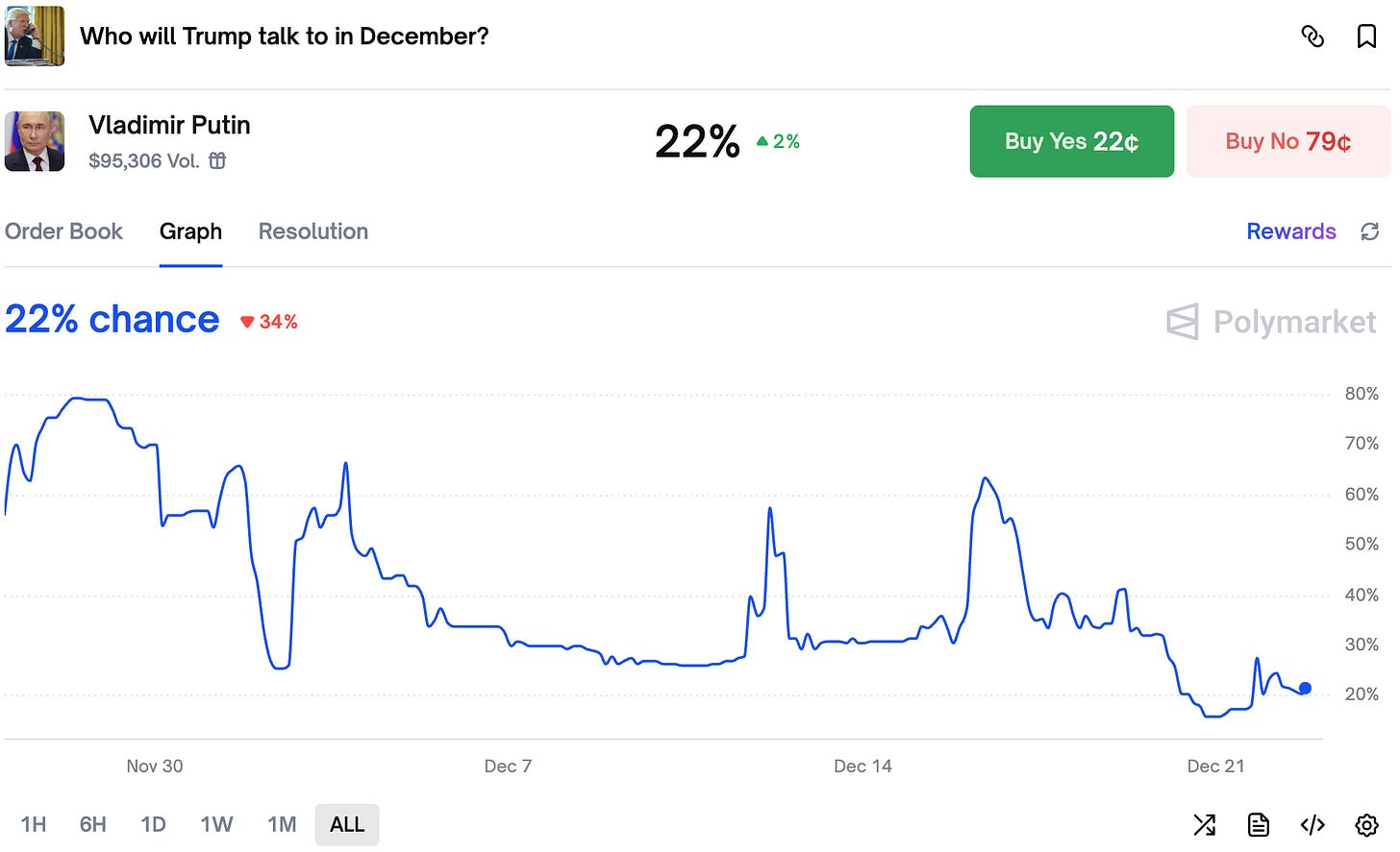 After Putin's recent comments on Ukraine war traders adjusted their odds of a Trump x Putin conversation.