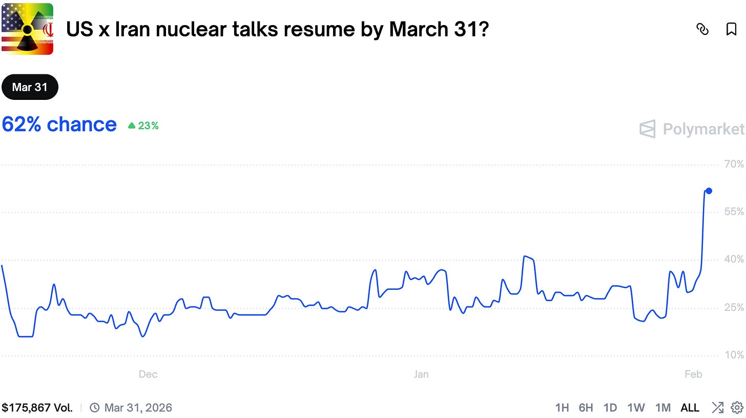 Iran tensions peaked last week, but it turns out we might see a deal instead as the chances of resumption rose to 62%.