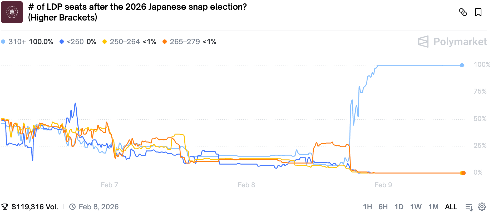 The party of Takaichi Sanae went into this election to strengthen its position as it previously ruled as a minority government. Now it has a 2/3 supermajority that can even take on changing the constitution. Sometimes risking it all pays off bigly.
