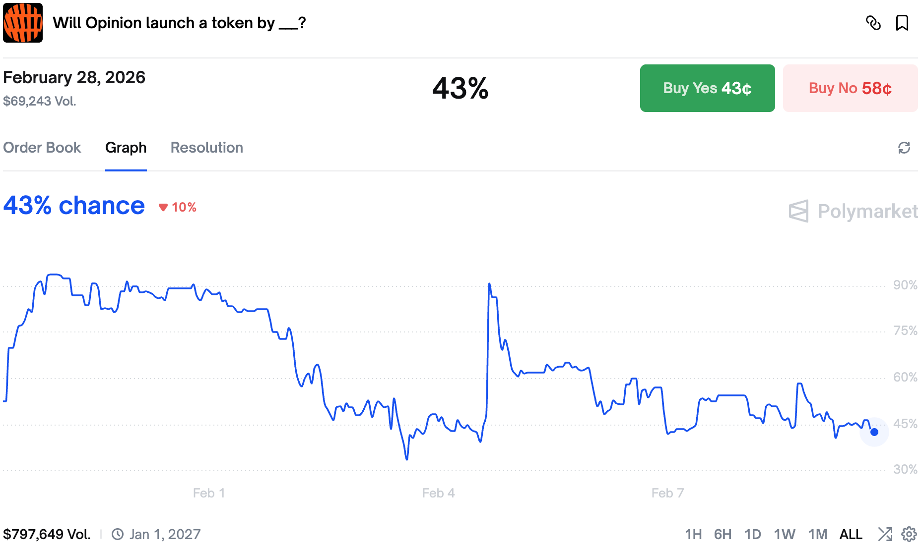 Opinion Labs is a mostly fake prediction market (most volume comes from wash trading) where the token launch is probably the only reason anyone trades there. It's the third time we are writing about this market and it got us thinking - maybe it is beneficial for Opinion Labs to delay the launch to keep the userbase engaged?
