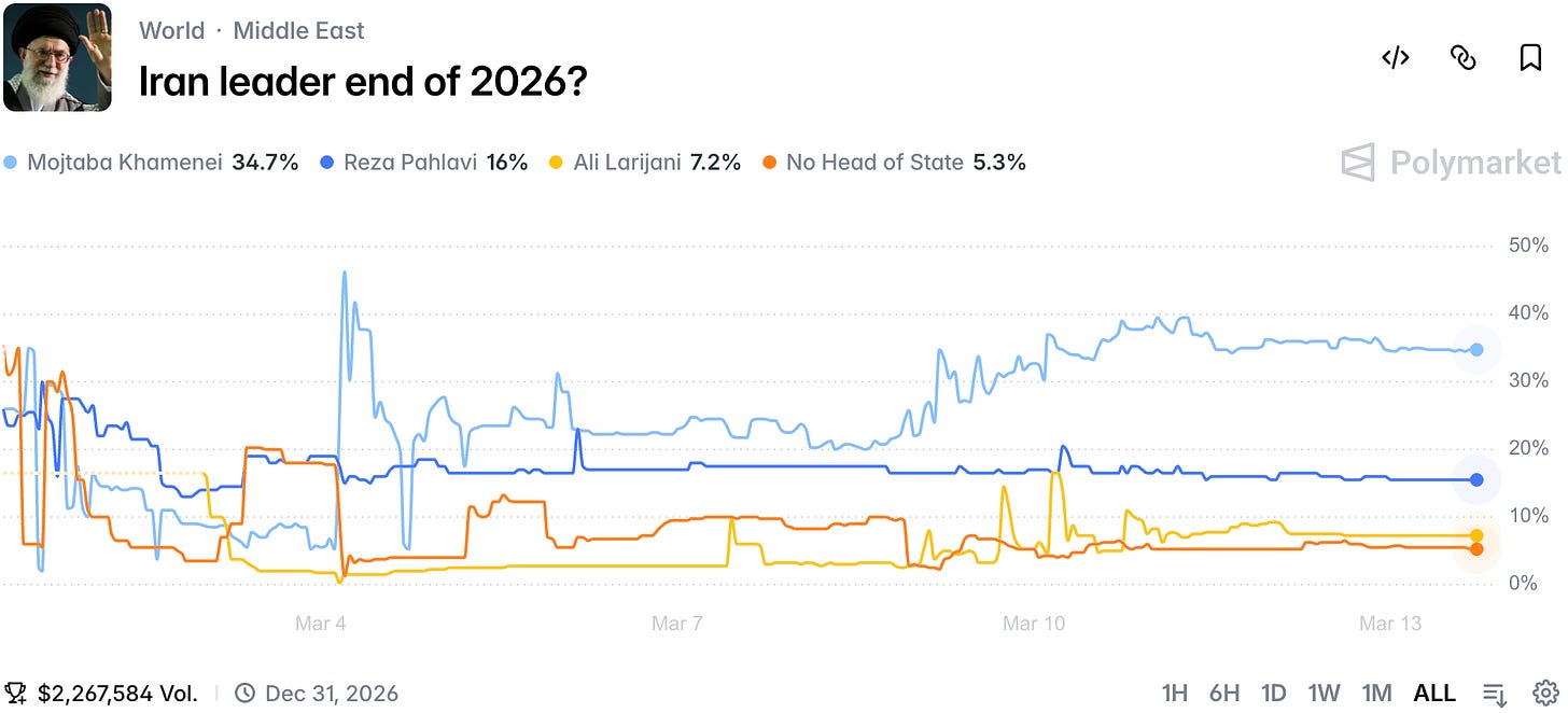 Our understanding of these 2 markets combined is that traders no longer see the US or Israel doing decapitation strikes. They proved to be largely ineffective when it comes to regime fall.