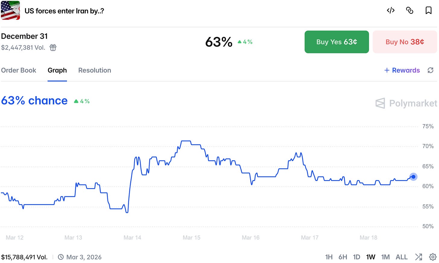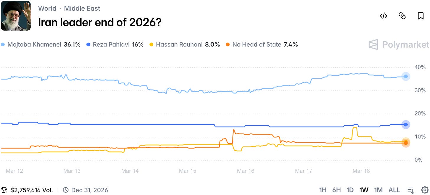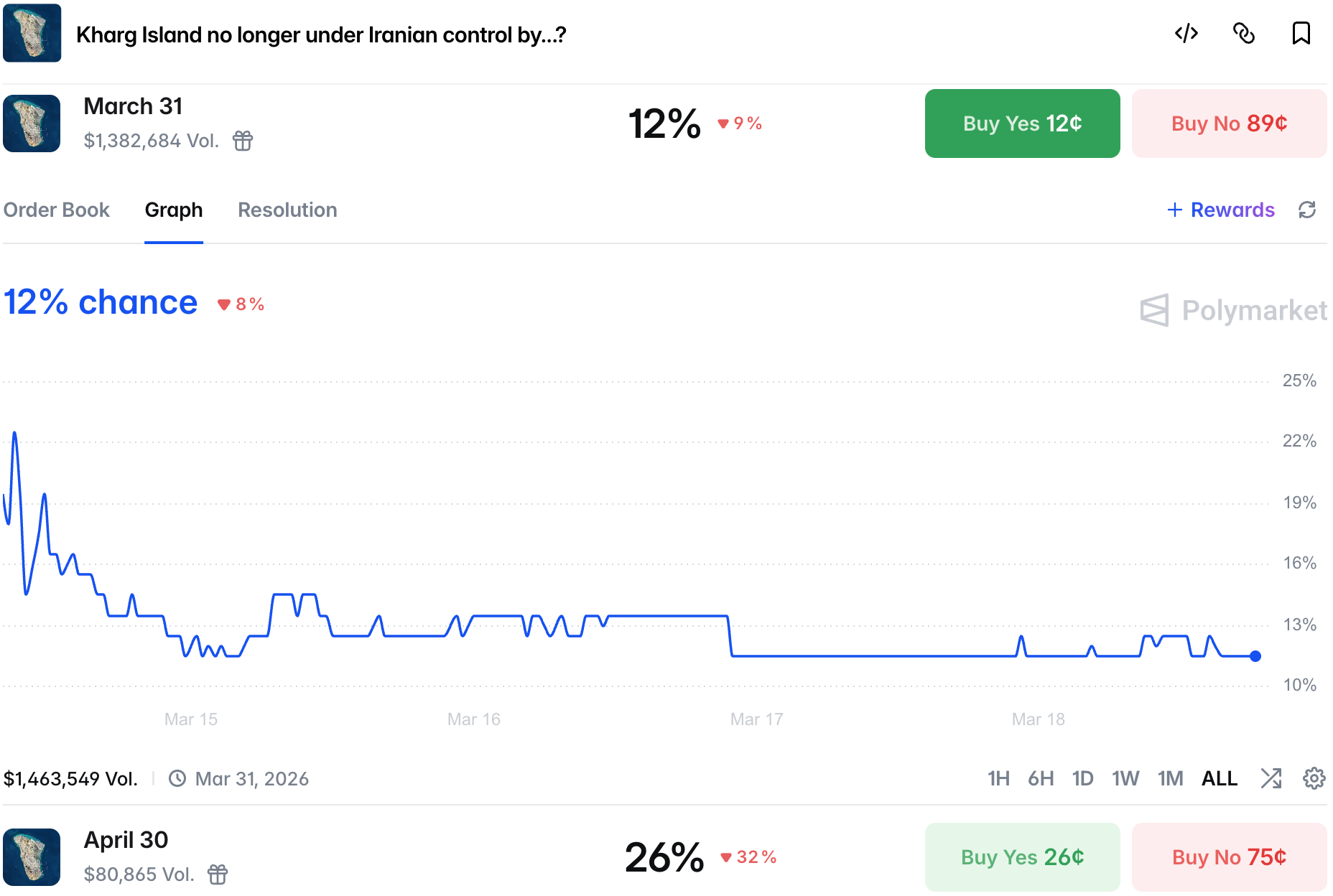 However, traders do see 26% chance of the US taking Kharg by the end of April. Quite a lot.