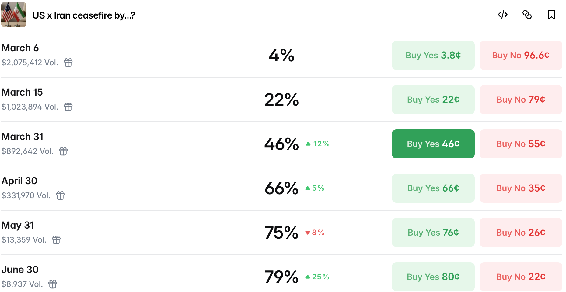 The market is still looking for a quick ceasefire, however they are no longer as optimistic about March.