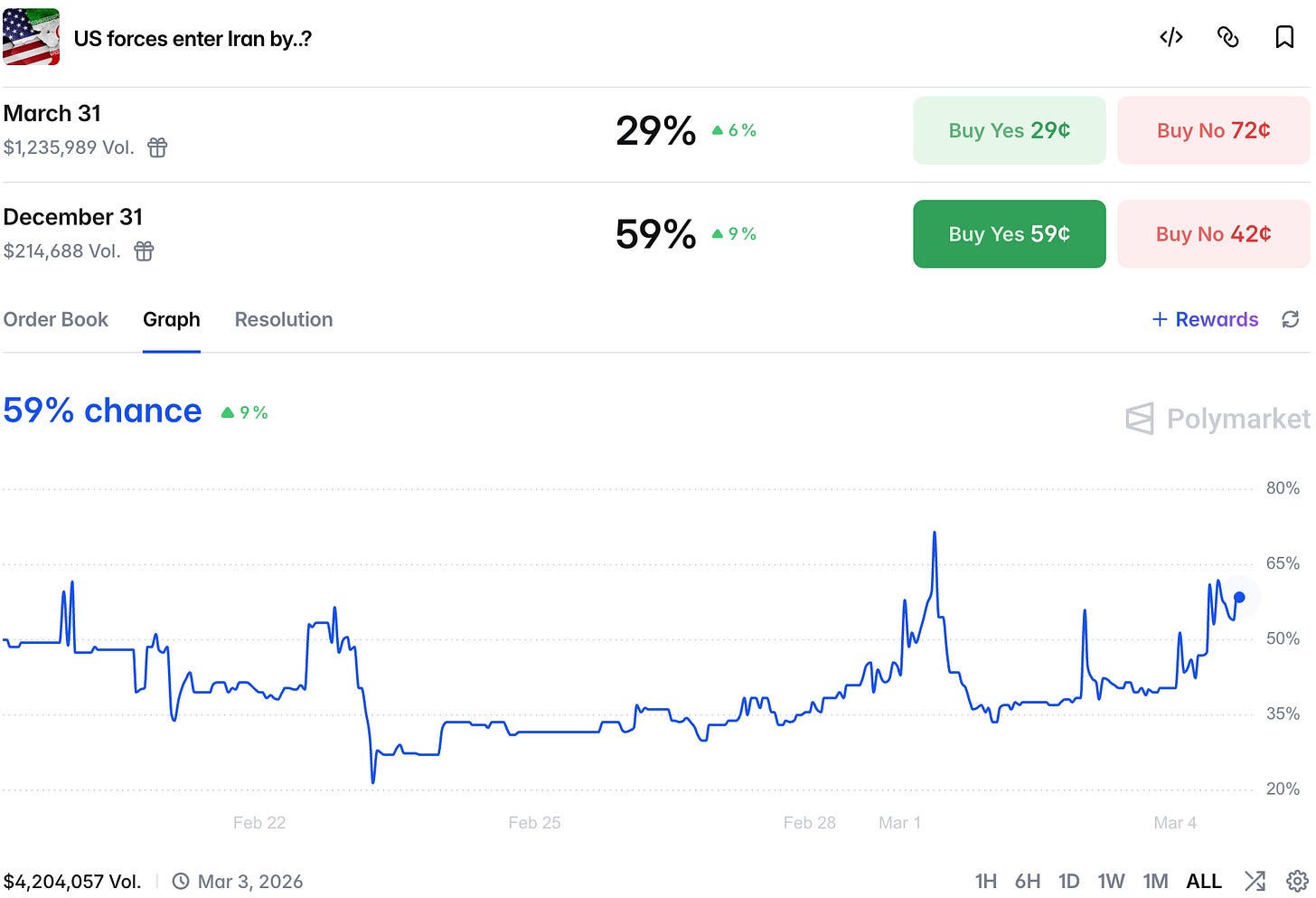 Markets also think it is increasingly likely we will see American boots on the ground eventually, giving it almost 60% chance by the end of the year.