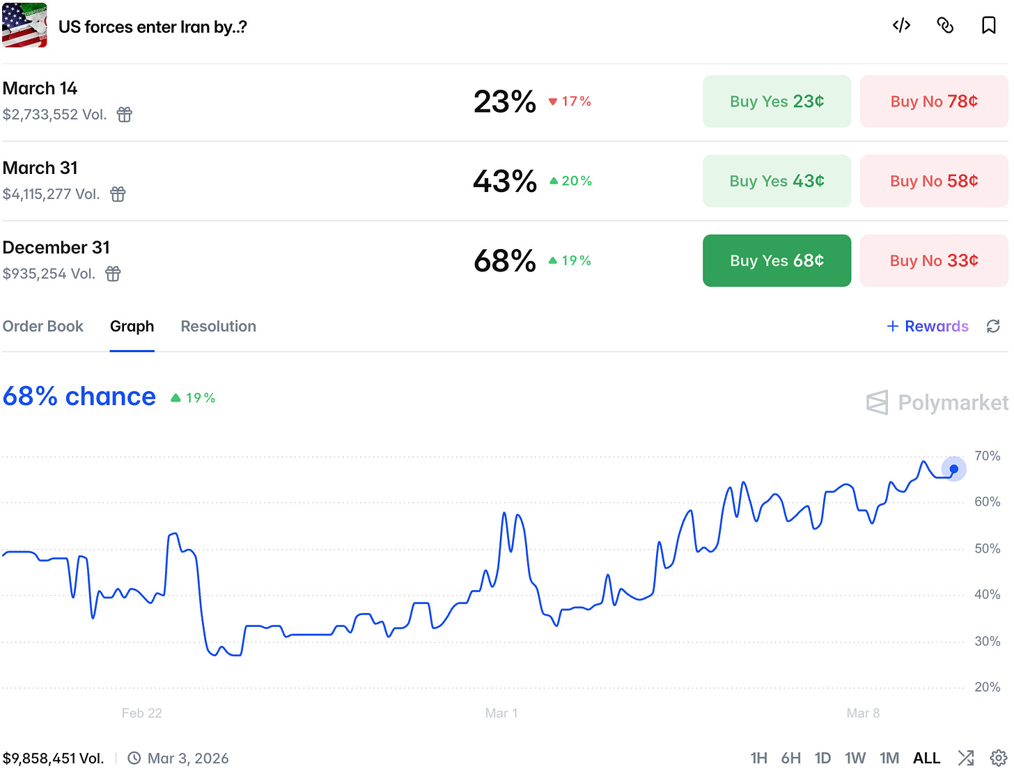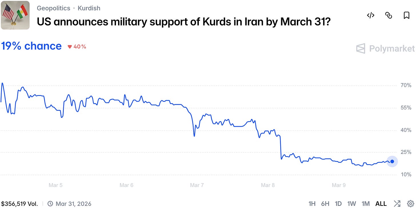 Trump continues to double down on the conflict, now demanding an unconditional surrender. However, Iran continues to say and show that it is ready for a prolonged conflict, aiming to impose outsized costs on team west (and the whole world to be honest).