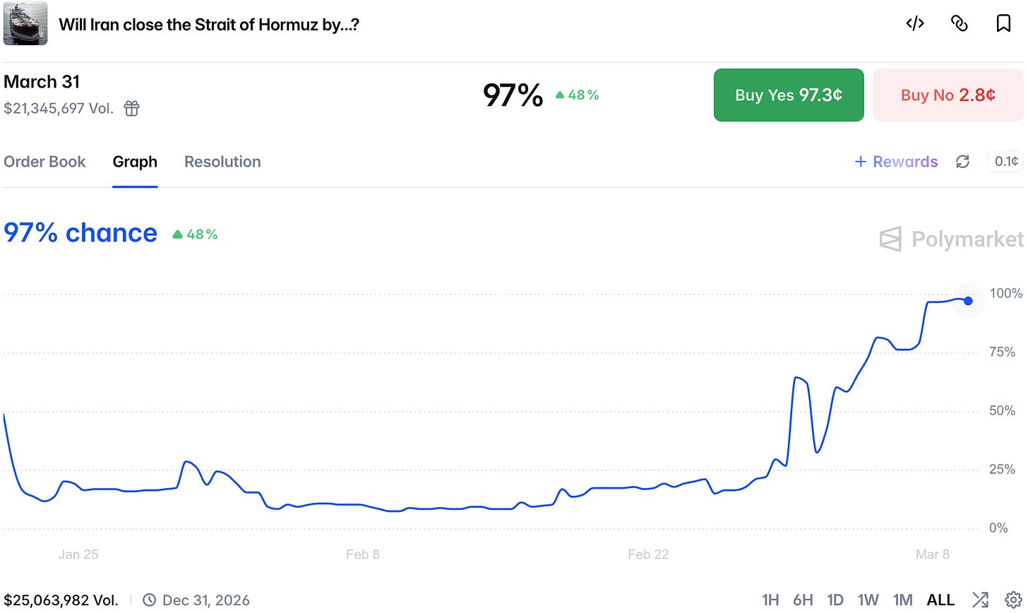Good morning! We are entering the second week of the Iran war and the situation is, well... dire. Oil briefly breached $100 per barrel, but went down after SPR release was teased.