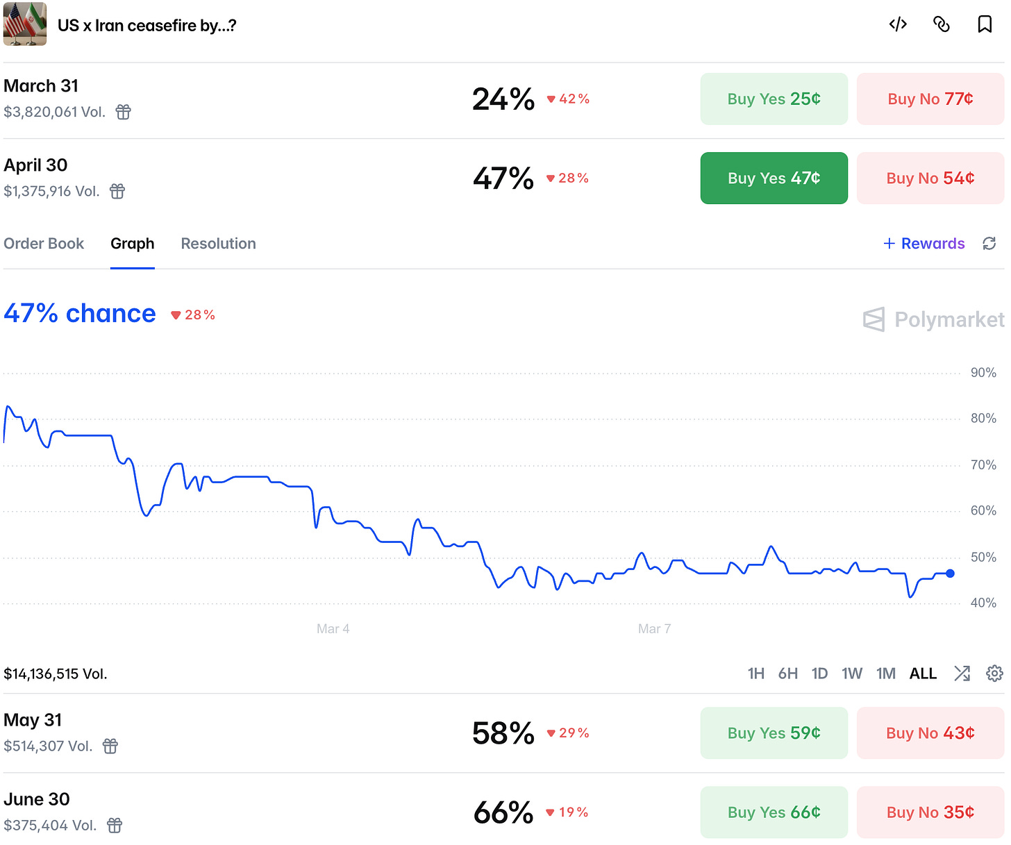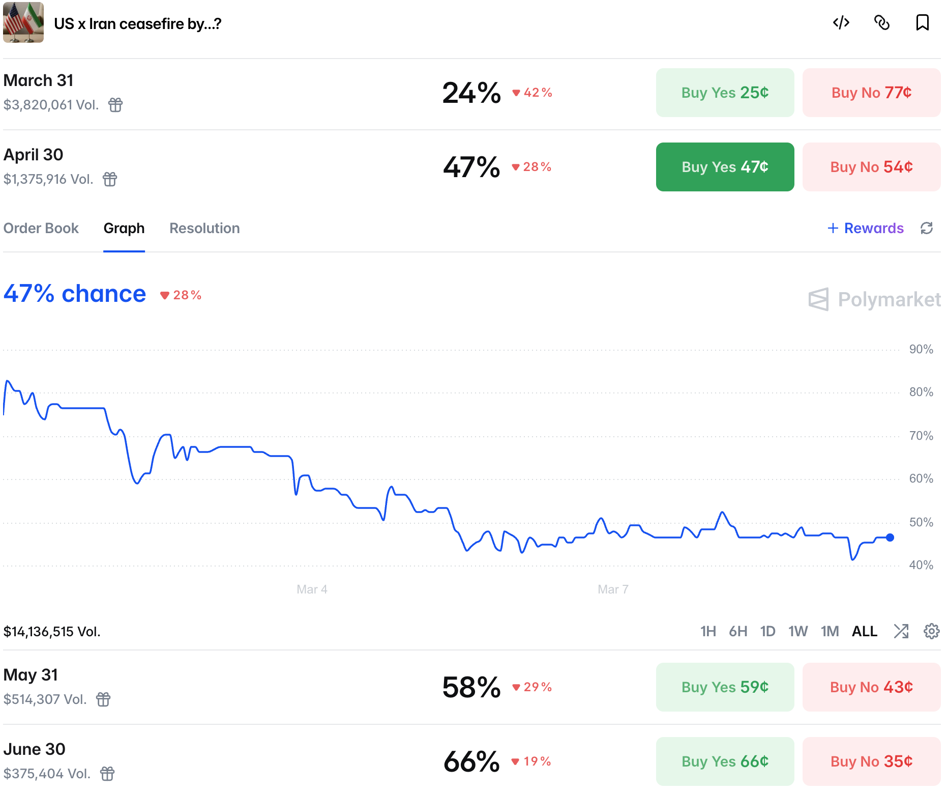 After initial optimism regarding a swift ceasefire, traders now no longer see it as likely by the end of April.