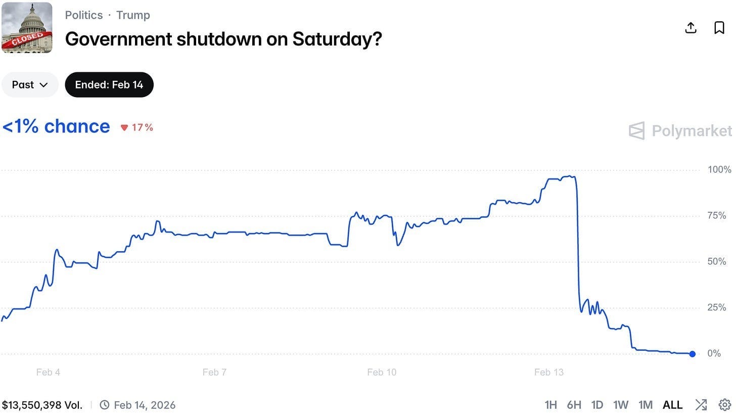 Comment: it is no shocker that Republicans and Democrats fight over the DHS funding, as this is the department responsible for curbing migration and deporting illegal aliens. We can expect these negotiations to be hard as Trump is trying to figure out his strategy for the midterms. What is also shocking here is this Polymarket resolution, that happened only because the website use as the sole information source for a resolution was not updated. Markets probably should have secondary sources to avoid such situations.