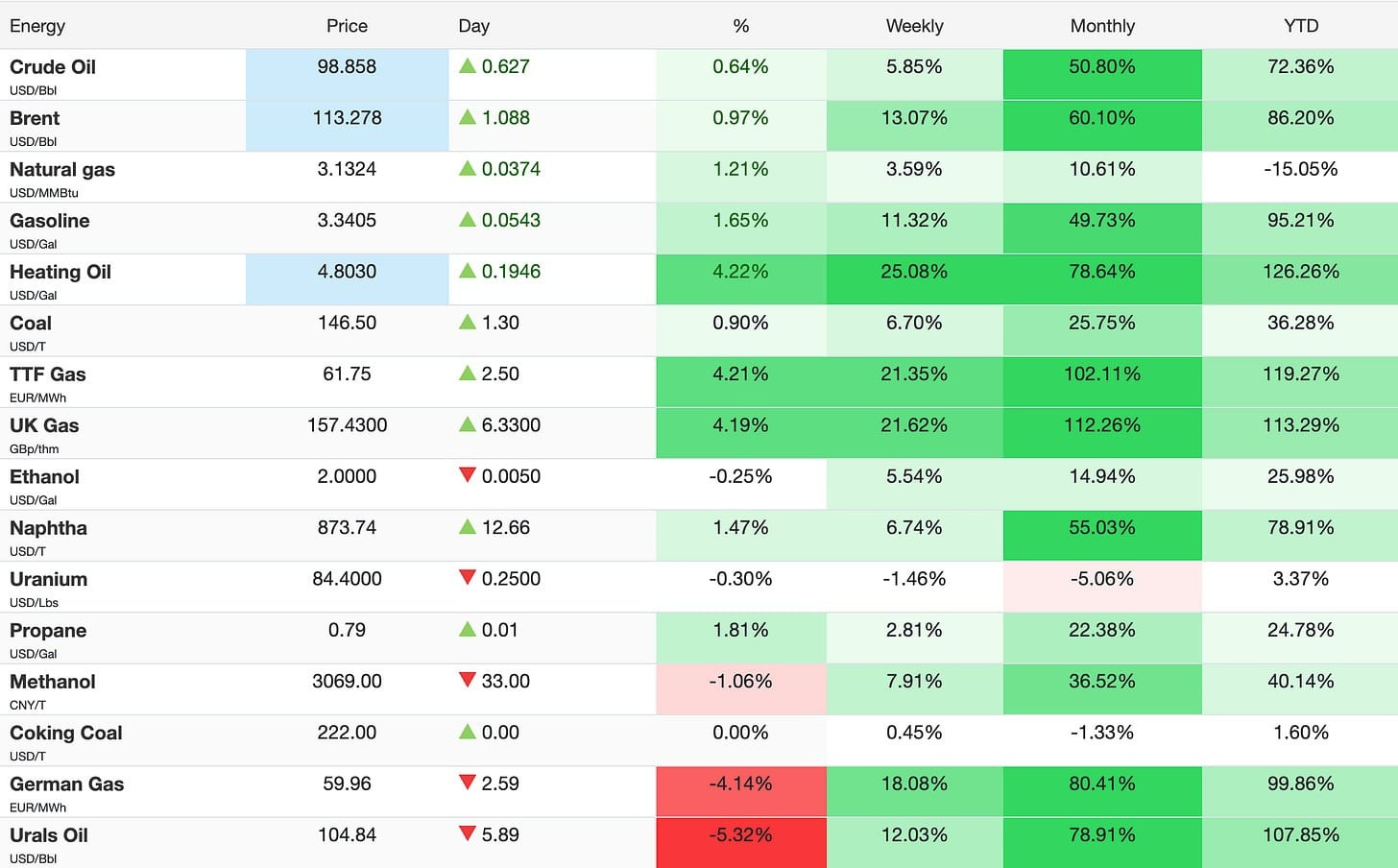 For now, everyone if focused on the price of oil, but price of all energy commodities is up a lot since the start of the war: